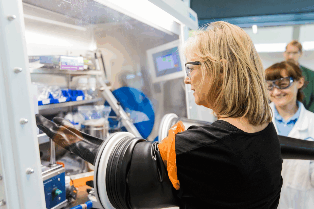 A key highlight of the visit was the official presentation of CarbonX One— Europe’s first facility dedicated to the production of battery anode materials. By securing 12GWh this factory enables the production of 120.000 cars. This announcement was followed by a lab tour through CarbonX’s cutting-edge battery test facilities, where councillor Zeegers personally initiated a new LFP battery stability test cycle for the next generation of CarbonX batteries. This battery will run for at least 2,5 months, forecasted to exceed a 1000 cycles.
